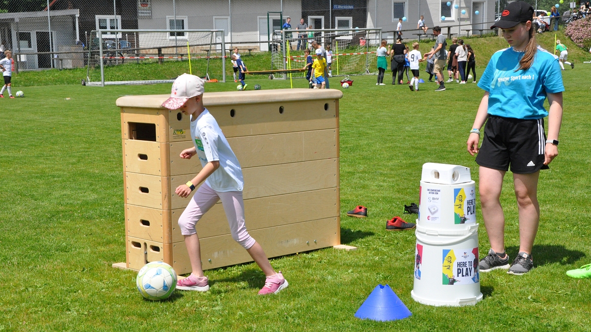 Unter dem Motto „Bayern Tour – Special Edition: Doppelpass Schule und Verein zur Fußball-EM 2024“ war ordentlich Bewegung im Vorwaldstadion dank der Kooperation zwischen dem BLLV-Projekt BallHelden und der Initiative „Sport nach 1 in Schule und Verein“.
