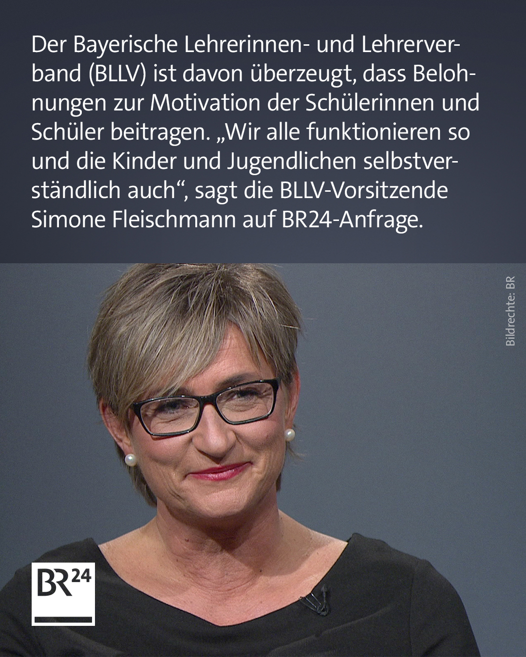„Prinzipiell will jeder Mensch von uns, wenn er eine tolle Leistung hinlegt, ein Lob haben“, sagt BLLV-Präsidentin Simone Fleischmann im Gespräch mit dem BR dazu. „Wir alle funktionieren so und die Kinder und Jugendlichen selbstverständlich auch. Eine tolle Leistung, ich werde gelobt, dann geht es mir besser. Das spornt mich an, das motiviert mich und damit ist die Motivation für die nächste Leistungserbringung gleich da.“