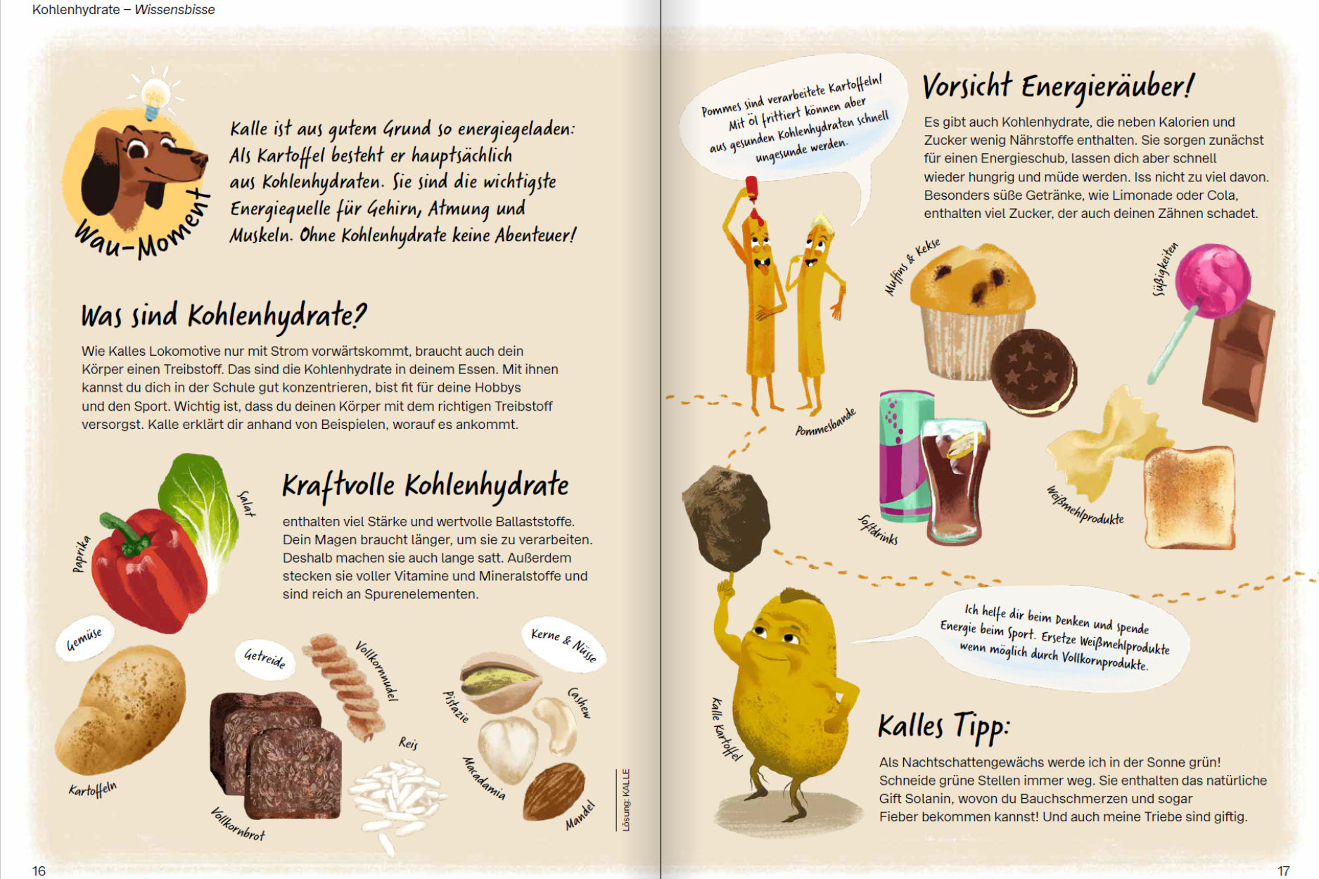 Der Ernährungskompass macht Ernährungswissen für Kinder im Grundschulalter zu einem großen Abenteuer: Gemeinsam mit Basti und seiner Hündin Bella tauchen sie ein in die Welt der gesunden Ernährung und helfen den Ernährungshelden bei ihrer Mission, die Nährstoffwelten zu retten. Dabei lernen sie spielerisch die verschiedenen Nährstoffgruppen kennen und erfahren, welche Lebensmittel für ihren Körper wichtig sind.