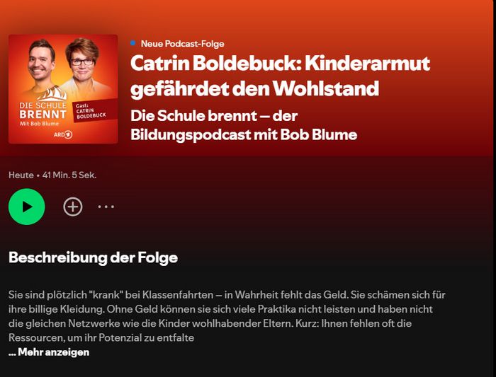 Oft haben diese Kinder auch ein viel engeres Umfeld, in dem sie sich bewegen als andere Gleichaltrige, die ganz selbstverständlich Ausflüge und Urlaube machen, neue Erfahrungen machen und lernen, sich zu bewegen in der Welt und irgendwie auch in ihrem sozialen Umfeld. Und davon betroffen ist etwa jedes fünfte Kind – 3 Millionen in Deutschland.