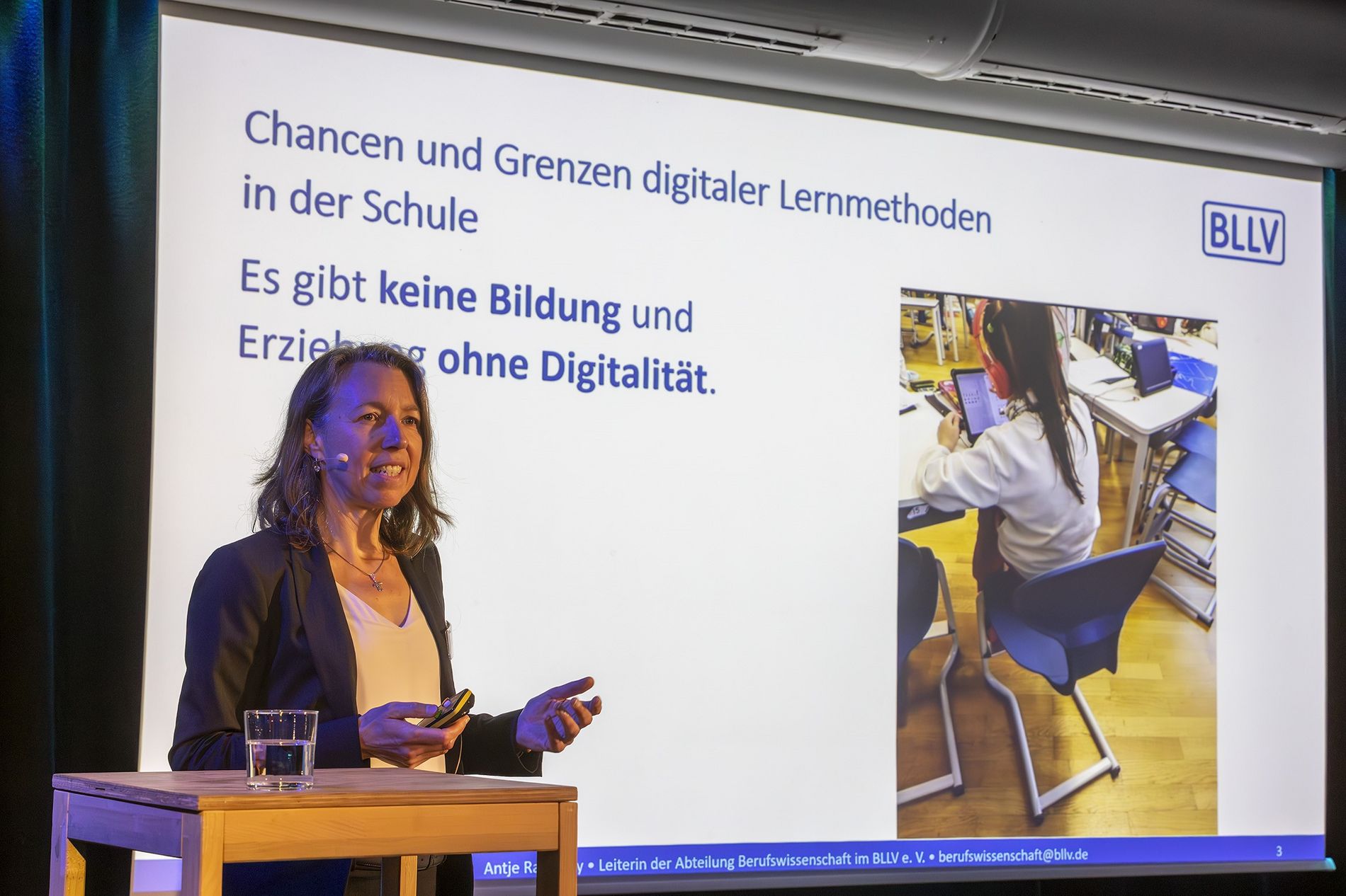 Antje Radetzky, Schulleiterin und Leiterin der Abteilung Berufswissenschaft im Bayerischen Lehrer- und Lehrerinnenverband (BLLV), erklärte bei der Veranstaltung vor Ort, unter welchen Voraussetzungen Digitalisierung an Schulen gelingen kann und Mehrwert bietet. Mit dabei auf dem Podium der Veranstaltung waren Carina Geier, Mitarbeiterin im Bayerischen Kultusministerium und Dr. Fritz Audebert, Vorstandsvorsitzender der ICUnet Group