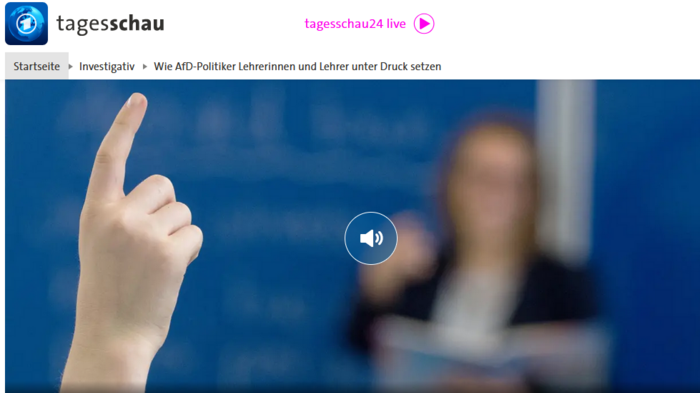 Gleichzeitig werfen AfD-Politiker:innen, Medienschaffende und teils auch junge Influencer aus dem rechten Spektrum den Lehrkräften vor, Schülerinnen und Schüler angeblich ideologisch zu beeinflussen und sie zu indoktrinieren. So wurden in Bayern in den vergangenen beiden Jahren einige Fälle bekannt, in denen AfD-Mitglieder Schulleitungen oder Lehrkräfte in Form von Anfragen an die Bayerische Staatsregierung anprangern – unter anderem mit der Begründung, diese würden gegen das Neutralitätsgebot verstoßen. In der Sendung des ARD-Magazins Kontraste vom 6. November 2025 erzählt ein Schulleiter eines Gymnasiums in Niederbayern von einem ähnlichen Vorgehen, nachdem er zu einer überparteilichen Demonstration aufgerufen hatte – für Demokratie und gegen die Remigrationspläne rechtsextremer Kreise. In manchen Bundesländern habe die AfD sogar Meldeportale eingerichtet, über die auffällige Vorfälle im Unterricht der Partei gemeldet werden können.