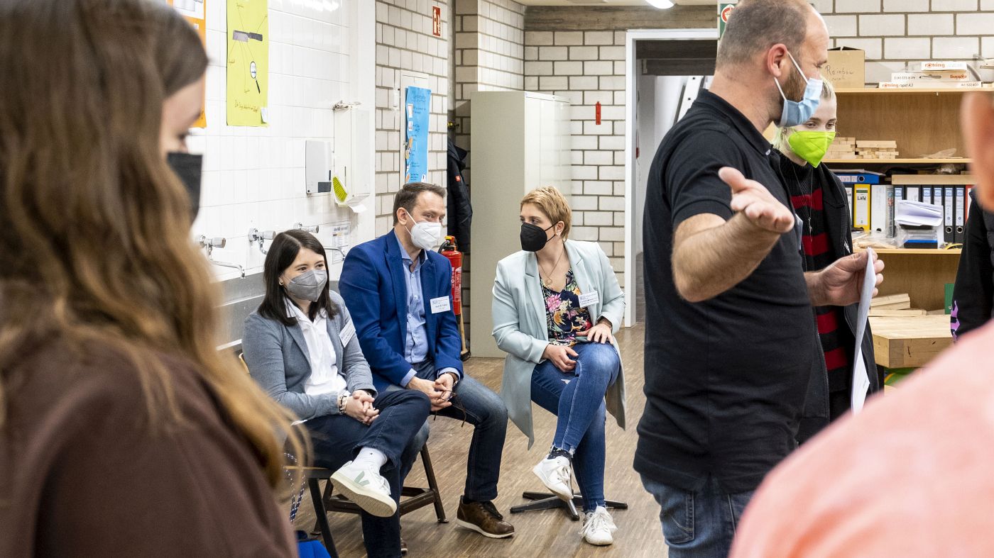 „Ich finde es wichtig, dass Sie sich anschauen, was die Fachlehrer und Fachlehrerinnen leisten“, sagt Schulleiterin Gina Hanke. Die Gäste nehmen am Unterricht teil und erhalten einen direkten Einblick in Werken, Gestalten, Wirtschaft, Technik, Soziales und Sport. Zudem schildern die Fachlehrkräfte ihren Alltag, der geprägt ist von viel Engagement, aber auch großen Problemen, die sich aus dem akuten Lehrermangel ergeben.