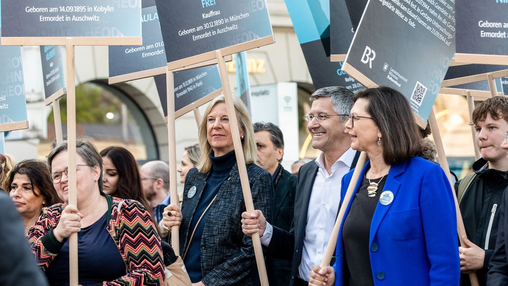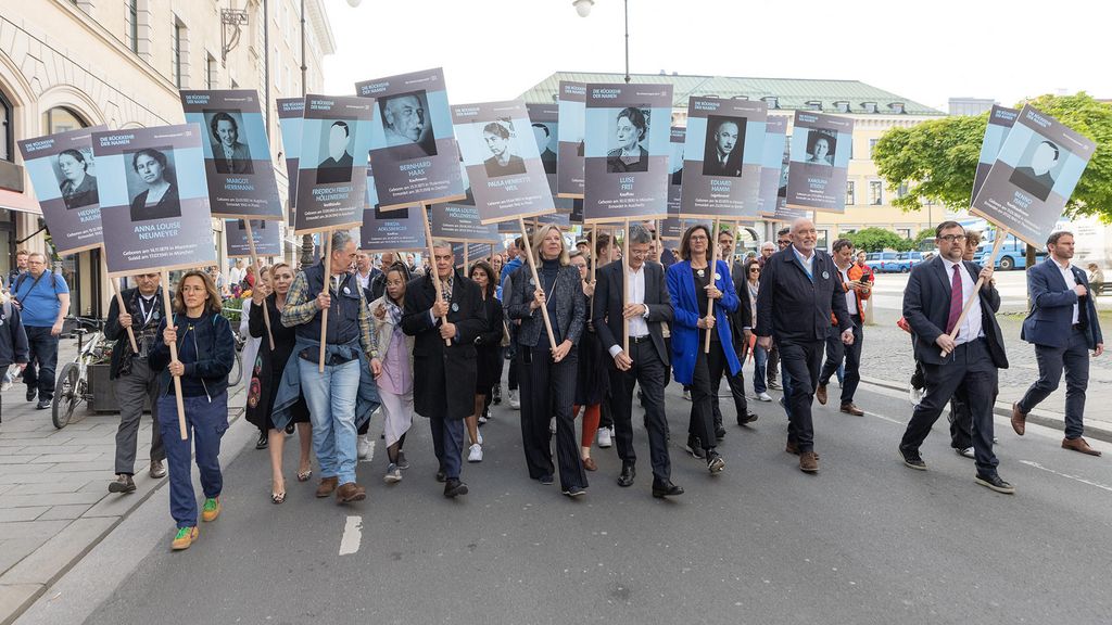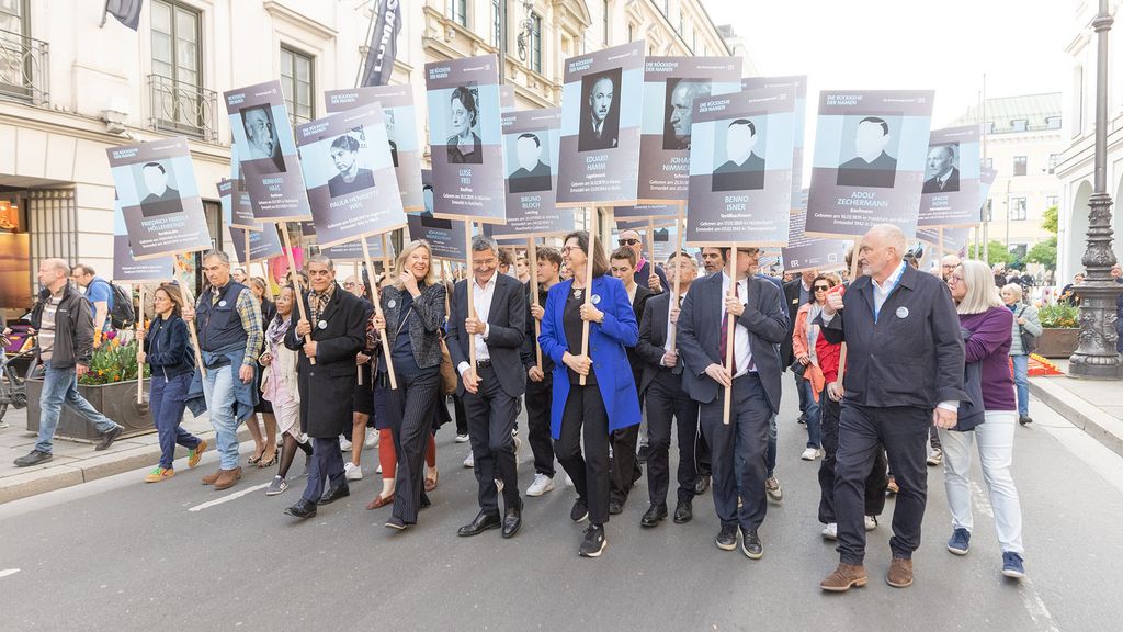 An die Opfer des nationalsozialistischen Terrors wird am 11. April mit großen Gedenktafeln erinnert, die von Patinnen und Paten aus den Opfergruppen, anderen Organisationen, der Münchner Zivilgesellschaft und der breiten Öffentlichkeit getragen werden. Ab 15 Uhr stehen sie an vielen Punkten der Innenstadt.