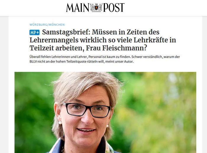 Wir freuen uns sehr, dass Sie dabei die Leistung und Belastung der Lehrkräfte an den Schulen anerkennen. Denn die Kolleginnen und Kollegen vor Ort haben alles gegeben. Und natürlich ist es auch uns wichtig, dass das gesehen wird. Denn es ist ganz richtig: Wir haben eine Vielzahl von (neuen) Herausforderungen, wie eben Integration und Inklusion. Und hier stehen wir nicht mehr vor der Gesellschaft, wie sie vor 30 Jahren war und auch nicht vor demselben Menschenbild, wie es vor 30 Jahren war. Hier müssen wir alle gemeinsam mehr leisten und vorankommen. Das wird auch nicht gehen, indem mal eben nochmal alle ein bisschen mehr arbeiten. Wie gesagt, wurden die Teilzeitmöglichkeiten schon eingeschränkt. Wir bleiben übrigens dabei: Wenn irgendwo eine Lehrerin oder ein Lehrer fehlt, dann fehlt der auch dann noch, wenn zehn andere dafür zehn Prozent mehr arbeiten. Denn man kann nicht zu einem Zehntel vor einer Klasse stehen und die Mehrarbeit ist jetzt nicht gerade die Parademaßnahme für eine größere Arbeitszufriedenheit. Wir können aber auch bei den klaren Zahlen bleiben: Ein großer Teil der Lehrkräfte in Bayern sind Frauen, die beispielsweise Care-Arbeit in unterschiedlichster Art und Weise leisten. Damit kann die Teilzeitquote kaum verwundern. Was auch klar ist: Wir haben die Zahlen, was passiert, wenn Mehrarbeit verordnet wird, beispielsweise aus Baden-Württemberg. Die Zahl der Lehrkräfte geht zurück, denn wir leben in einem Arbeitnehmermarkt. So einfach ist das.