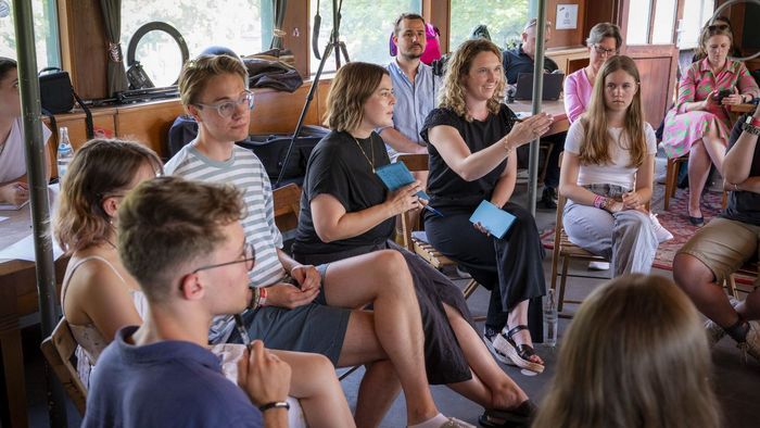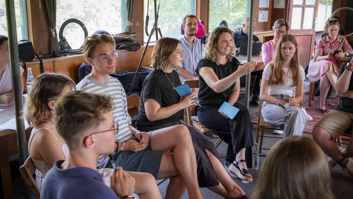 Die Moderation vor Ort haben Lisa Mona Zeiler, Vertreterin der Landesfachgruppe Ernährung/Gestaltung im Jungen BLLV und Carina Schmidt-Bock, stv. Landesvorstandsvorsitzende Junger BLLV. Und auch BLLV-Präsidentin Simone Fleischmann ist vor Ort mit dabei - diesmal in der Rolle als Teilnehmerin der Diskussion.